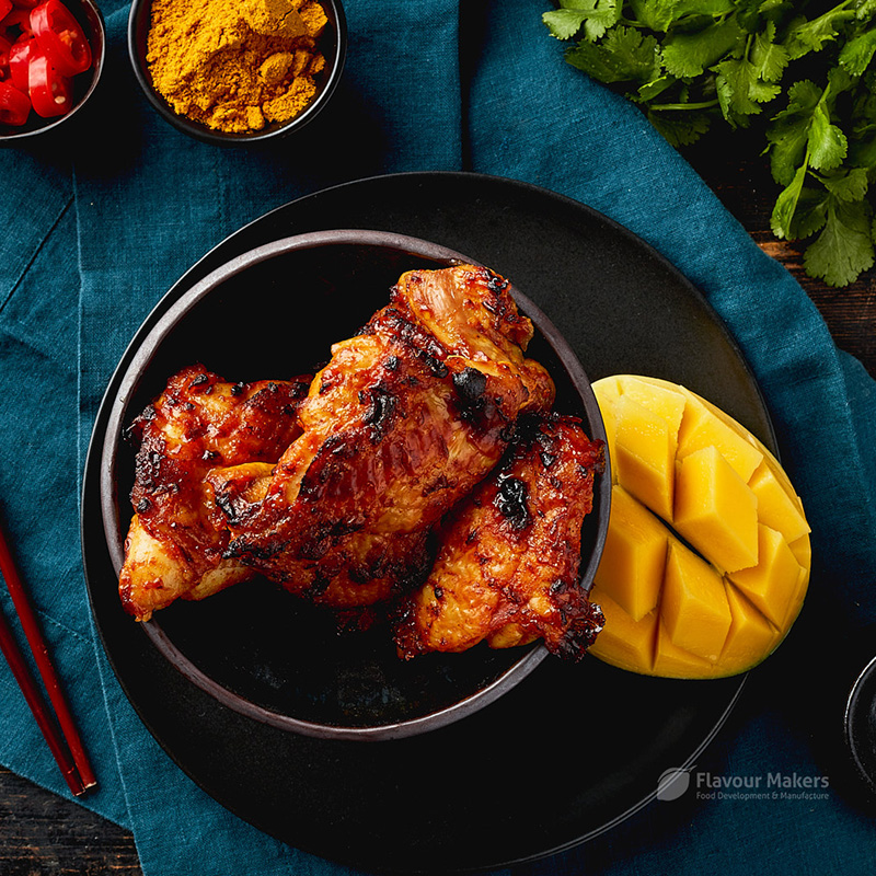 Glaze: Use 100g of spice per 1kg of meat. Tumble and allow to stand for 5 minutes for the glaze to develop. (Dosage can vary 8% to 10%)