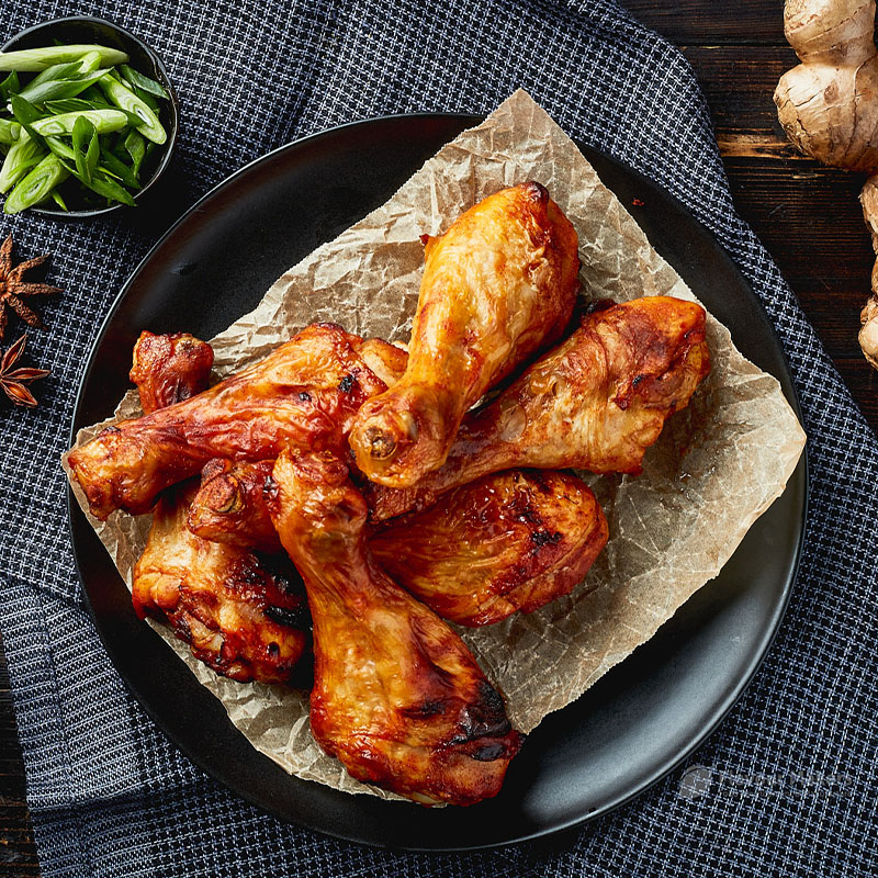 Marinade: Mix 50% glaze with 50% water (1:1 ratio), apply marinade at 20% of meat weight and tumble. Example 100g spice to 100g water and apply to 1kg of meat.